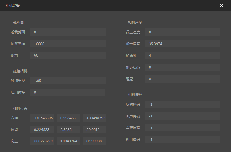 碰撞半径:相机球形碰撞体的半径。